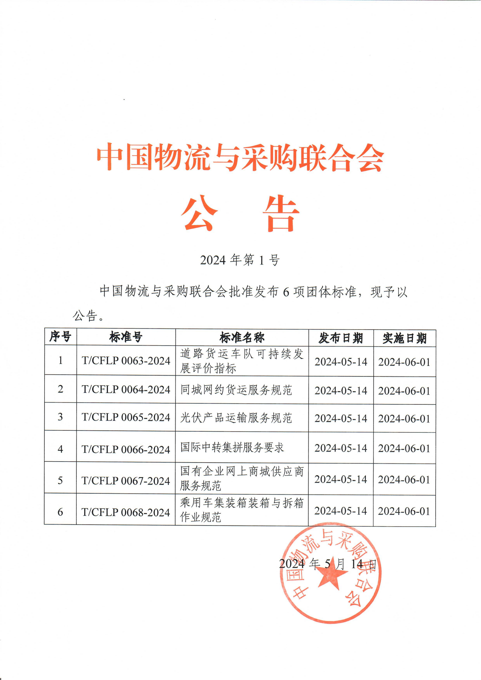 标准公告