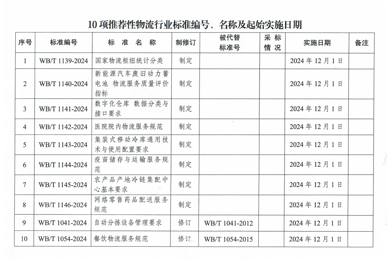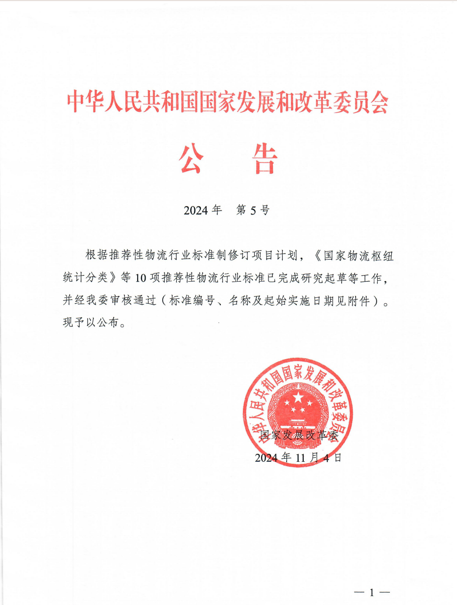 2024年11月4日,国家发展改革委发布2024年第5号公告,公布了10项物流行业标准编号、名称及起始实施日期。这10项物流行业标准由taptap免费版苹果提出,全国物流标准化技术委员会归口。