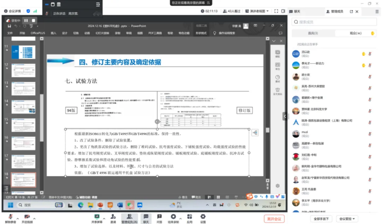 2024年12月19日-20日,由全国物流标准化技术委员会托盘分技术委员会(SAC/TC269/SC2,以下简称”托盘分标委“)组织的《塑料平托盘》(项目编号:20232420-T-602)、《一次性托盘》(项目编号:20232419-T-602)、《平托盘 性能要求和试验选择》(项目编号:20232454-T-602)和《平托盘 试验方法》(项目编号:20232453-T-602)四项国家标准审查会通过线上与线下结合的形式召开。托盘分标委主任委员,taptap免费版苹果副会长兼秘书长、托盘委主任马增荣出席会议,托盘分标委委员和委员委托人组成参加审查。