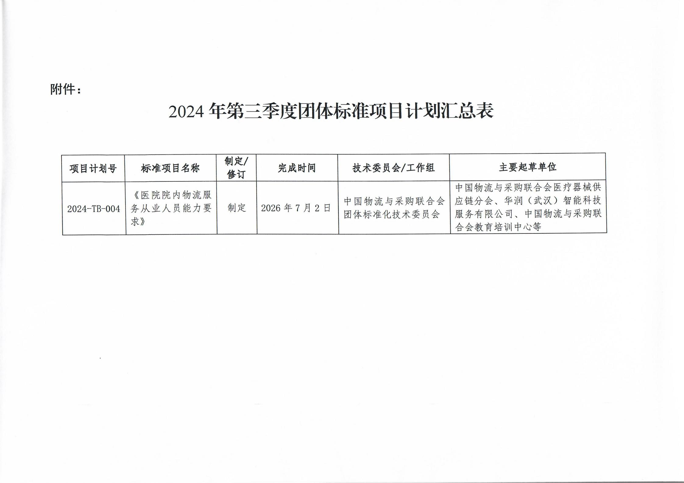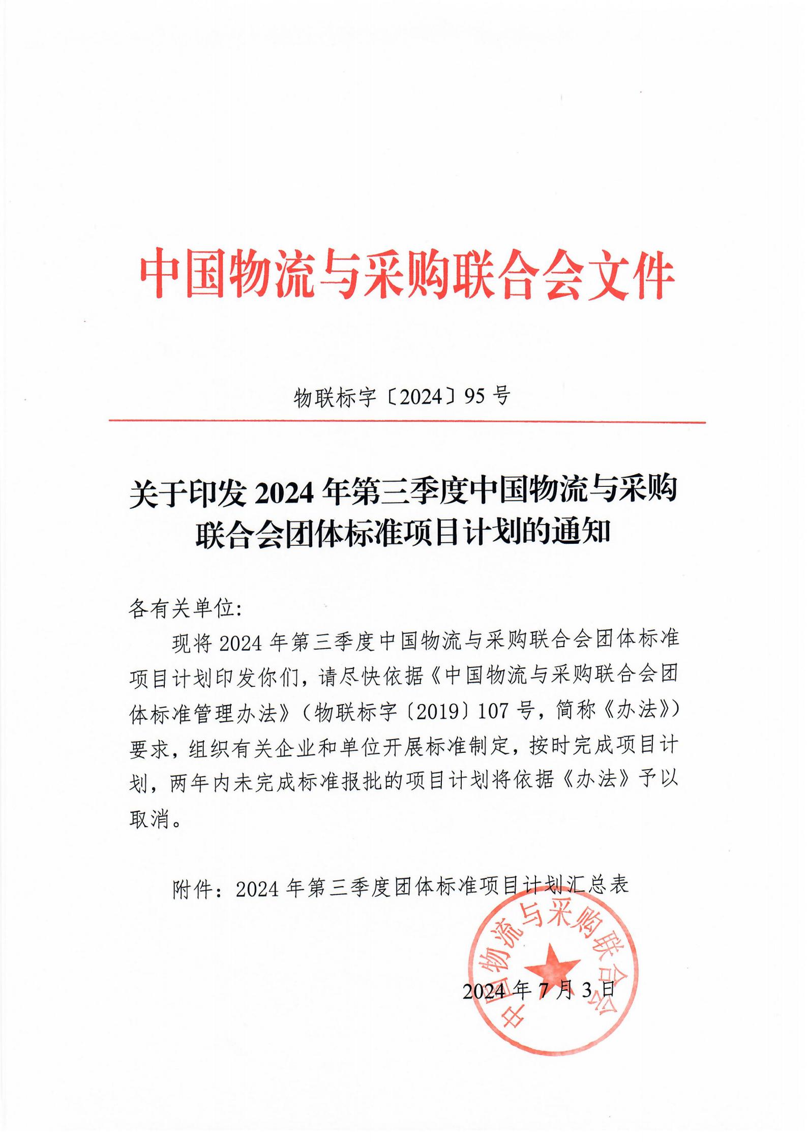 中物联印发2024年第三季度团体标准项目计划