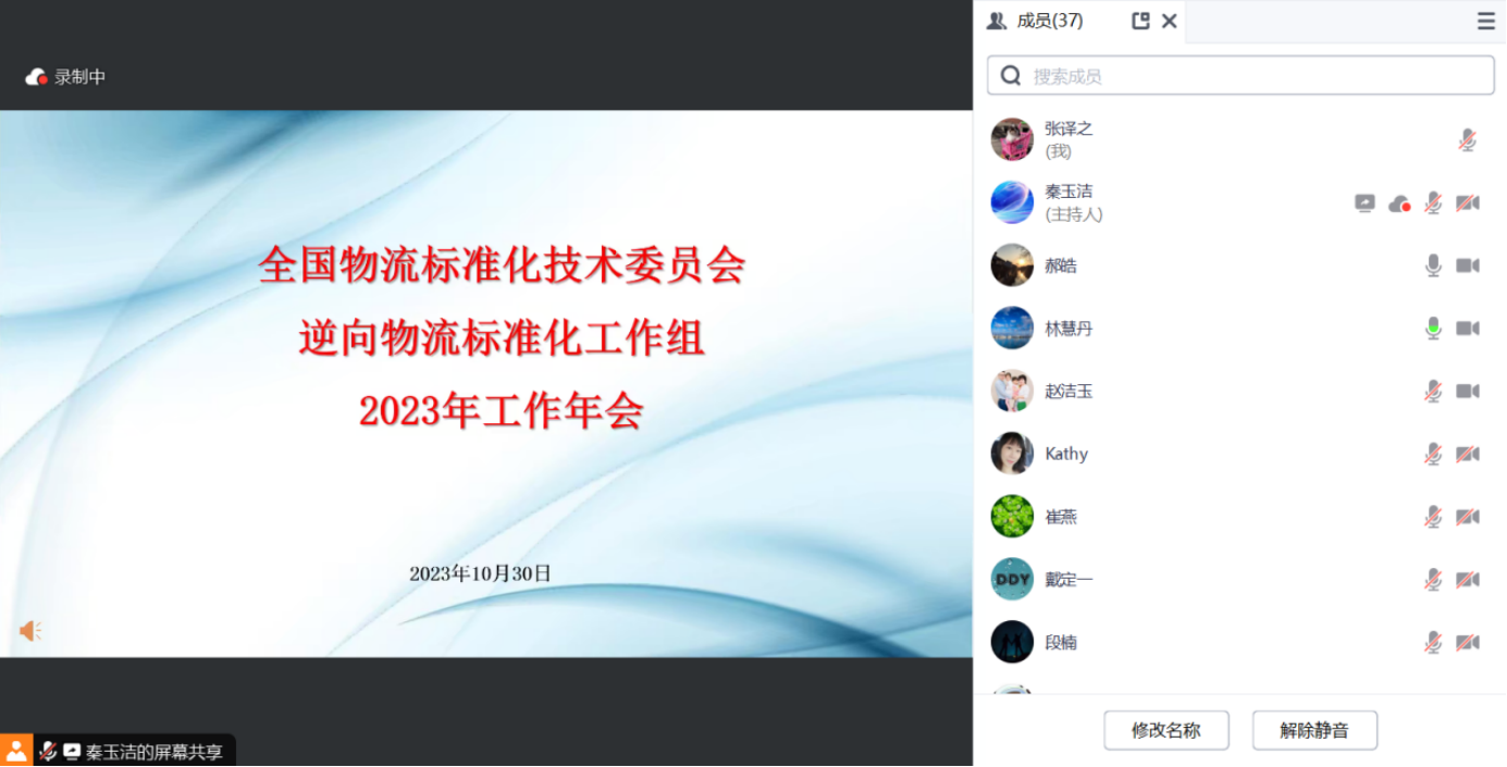 2023年10月30日,第二届全国物流标准化技术委员会逆向物流标准化工作组(以下简称“工作组”,编号SAC/TC269/WG4)2023年度会议在线上成功召开。全国物流标准化技术委员会秘书长李红梅,逆向物流标准化工作组组长戴定一会长,逆向物流标准化工作组委员和秘书处人员参加了此次会议。
